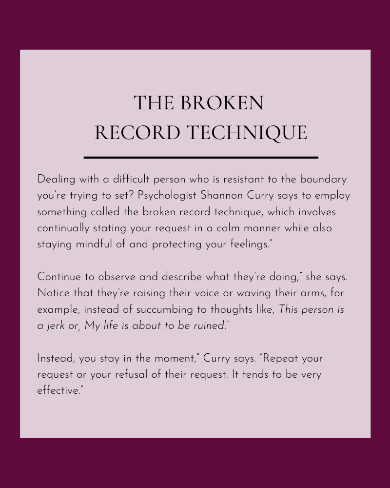 If you’re struggling to get started, remember this: Anyone who reacts poorly to healthy boundary setting probably isn’t someone you want in your life to begin with.