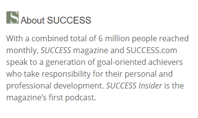 SUCCESS Insider is a weekly personal development/business podcast, created by the national, newsstand publication and multimedia site SUCCESS.